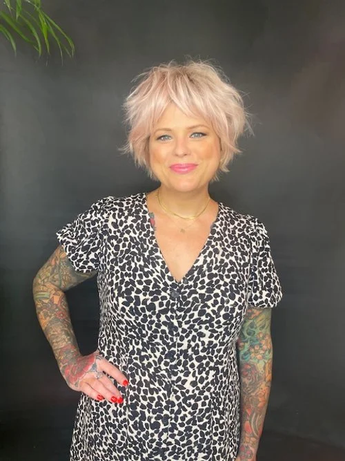 Ein Model Mit Einer Kurzen Bob Frisur Und Einem Kurzen Pony Premium Foto